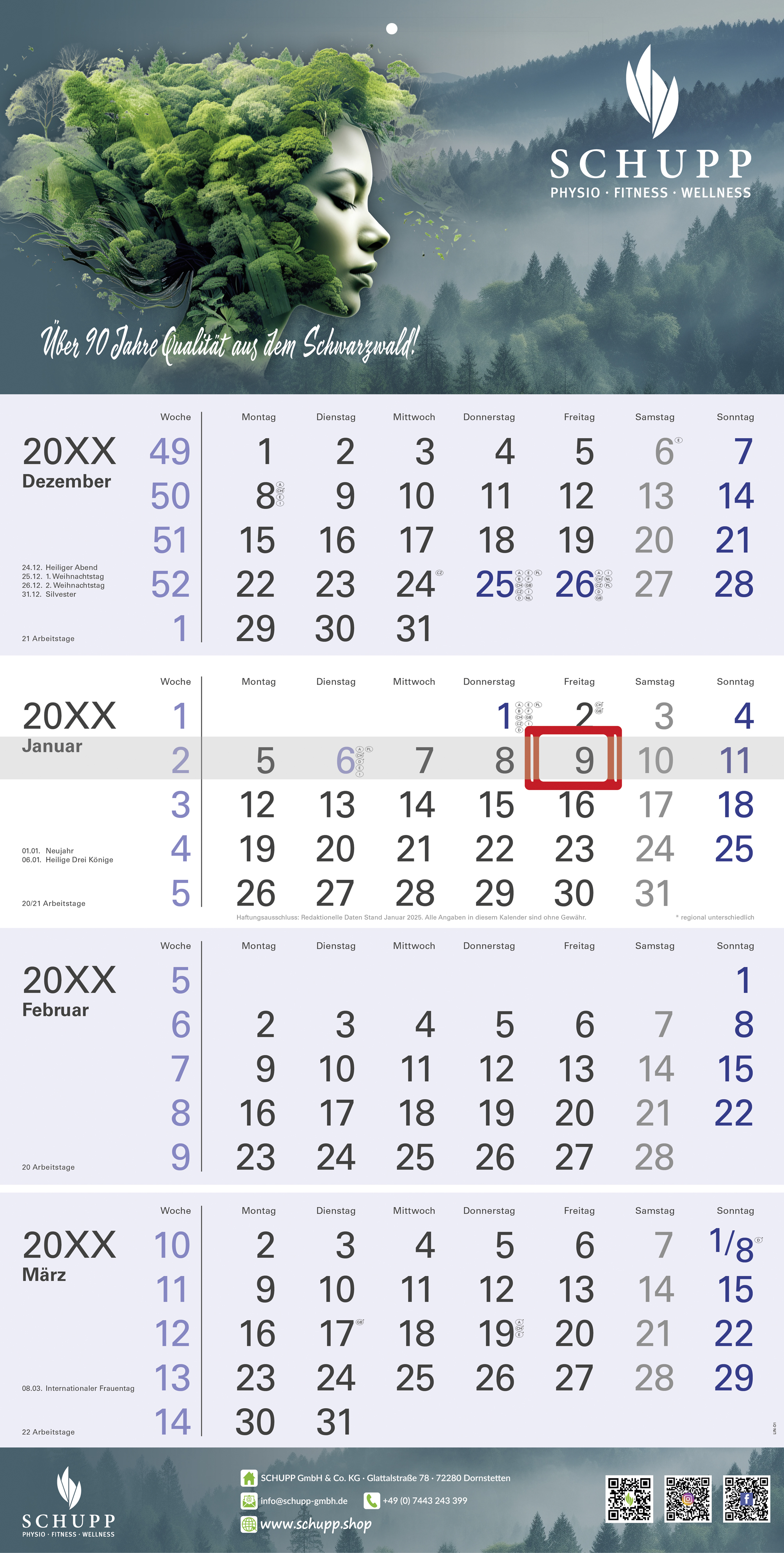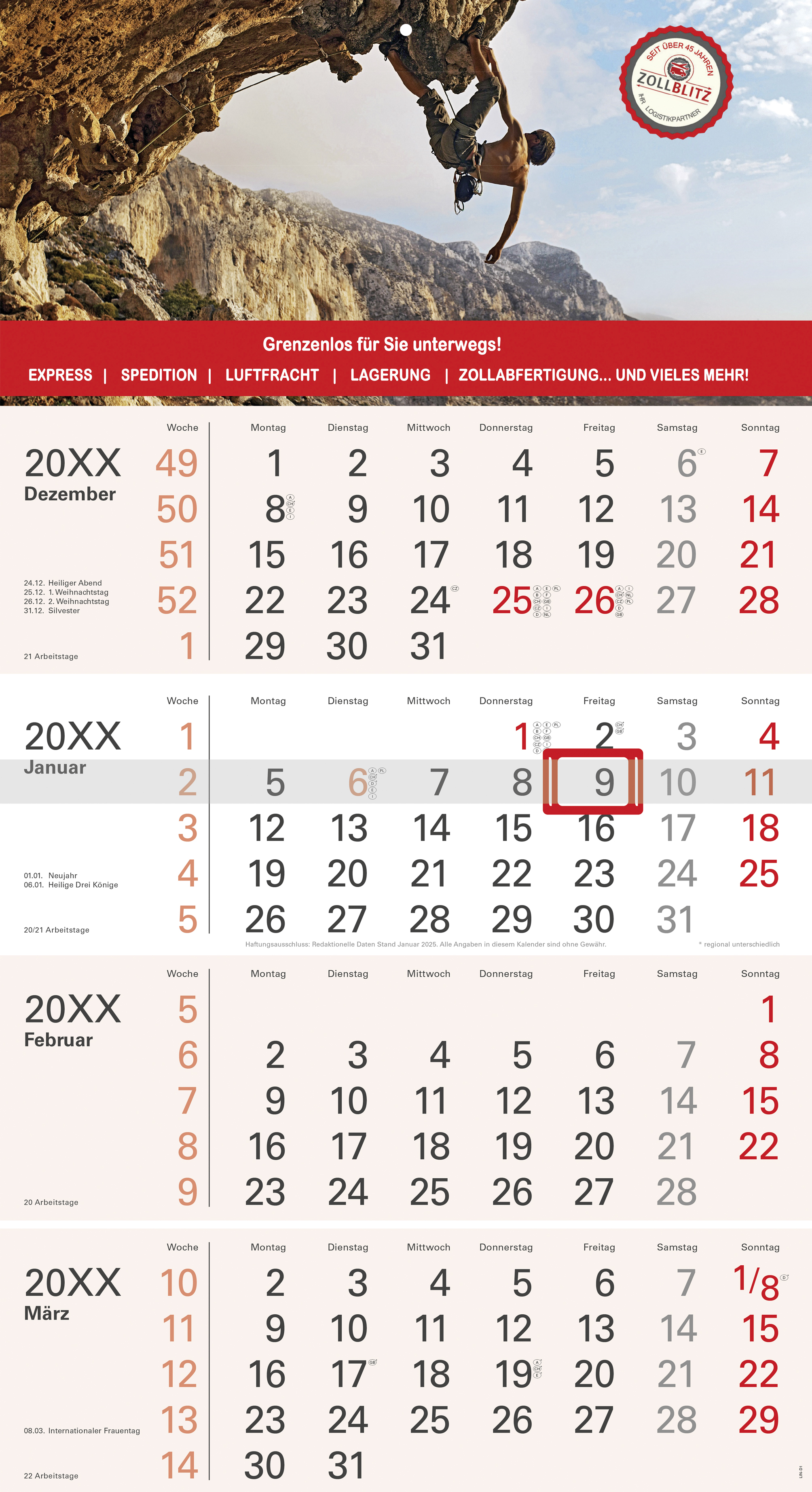 The Linea impresses with its modern design. This looks elegant and is more delicate in writing. There are different color variants to choose from. With our numerous additional options, your calendar will become the perfect promotional gift.