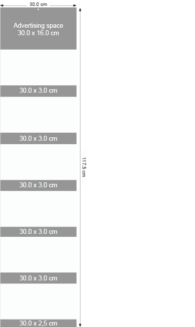30,0 x 16,0 cm Header 30,0 x 3,0 cm Stege 30,0 x 2,5 cm Footer 30,0 x 14,0 cm Advertising pages/Design sheet |