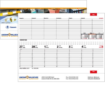 Optimal for the desktop. With time planner and lots of space to enter appointments. Wire-o bound. Multi-language calendars.