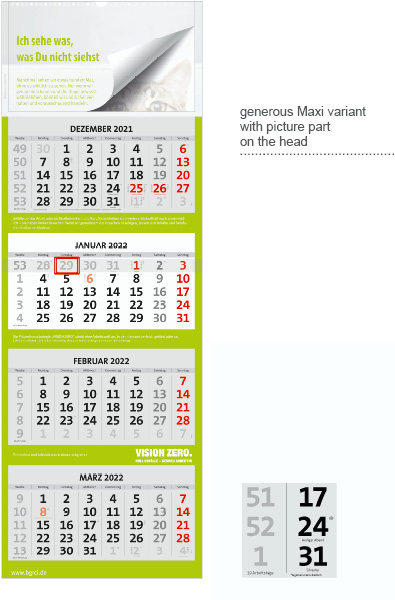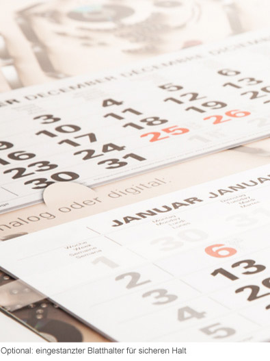 • Wire-o binding at the top in standard colours white, blank, silver with calendar hanger