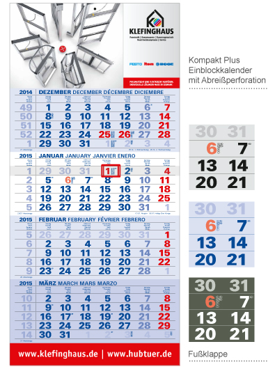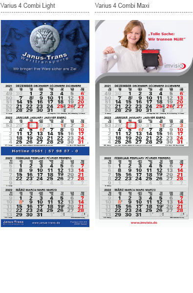 With our classics , the Varius , you have in the combo version 2 months at a block for tearing. Between the blocks, there is additional space for advertising. Optionally, you receive Him as borderless Light or Maxi variant.