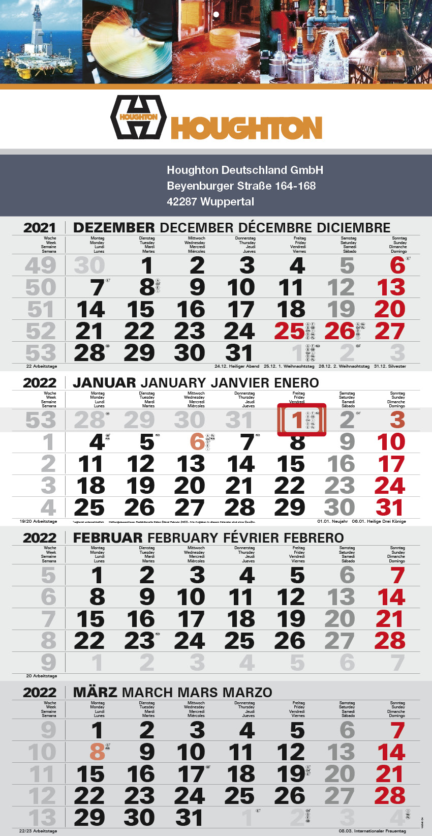 • Back corrugated with fold perforations within the calendar for shipping in B4 format