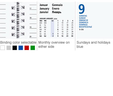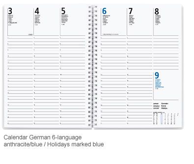 The Nova wire-o is a high-quality wire-o bound weekly planner in a handy format with 128 pages. German design 6 languages.