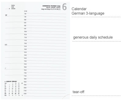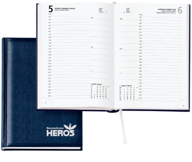 The “Privileg” is the traditional, solid book calendar divided into half hours on 320 pages and offers a lot of space to enter appointments. With hard cover or balacron cover.